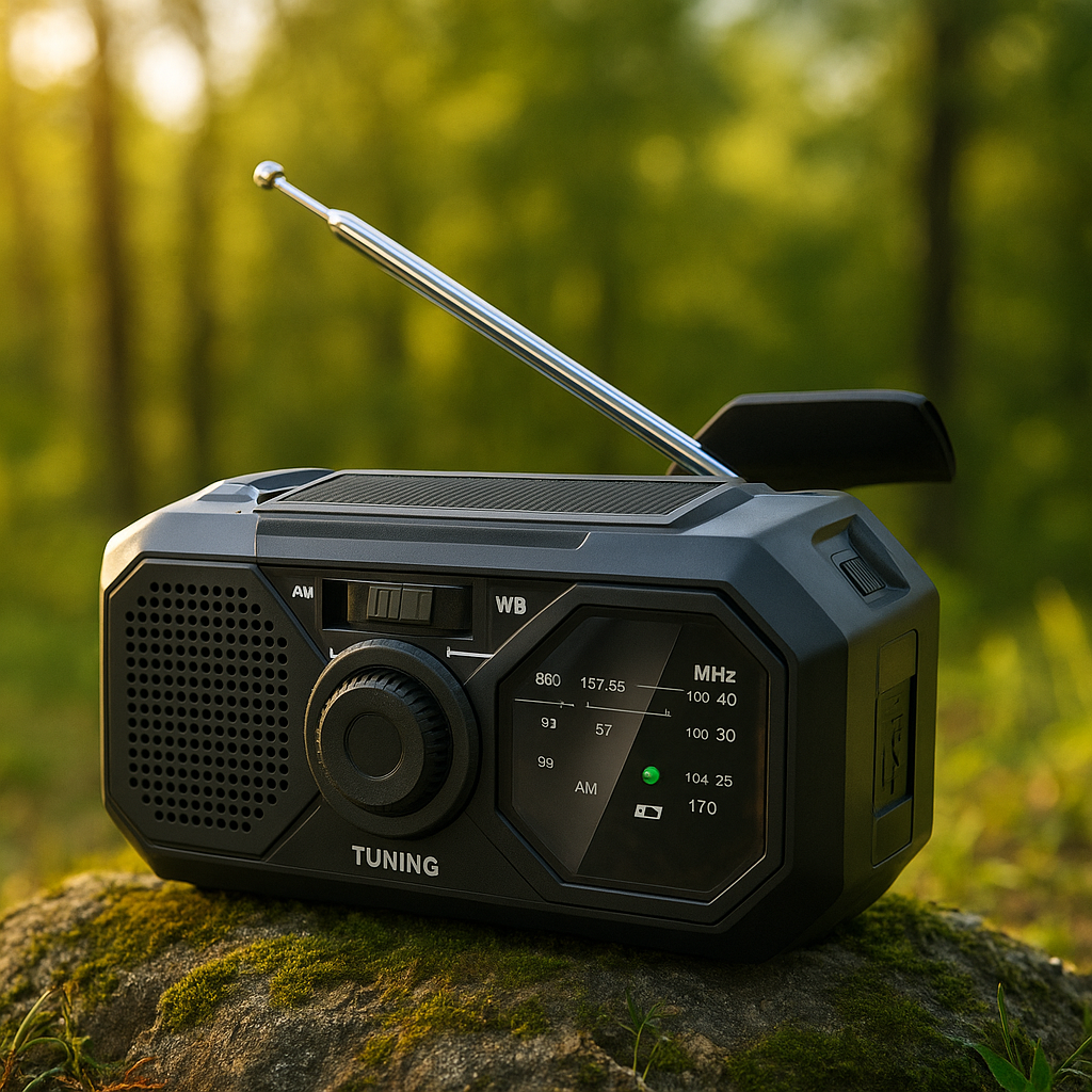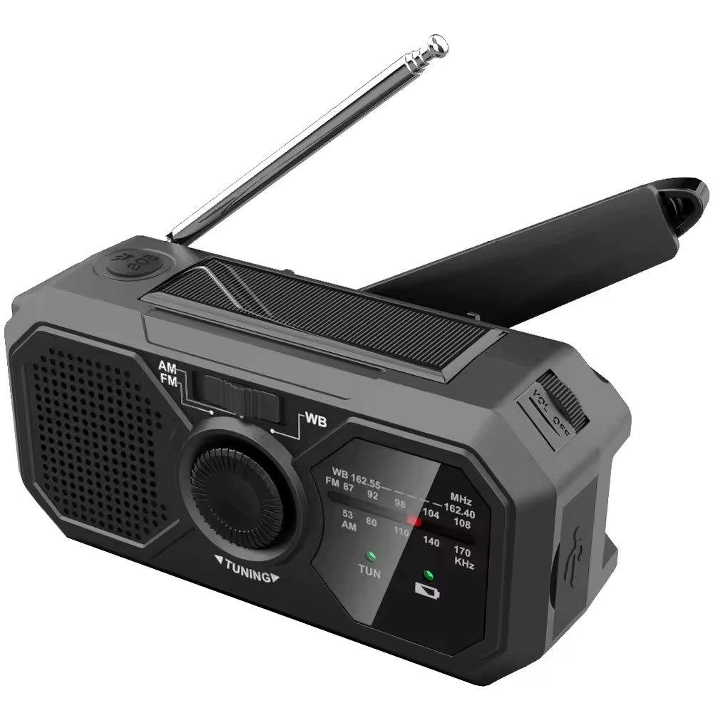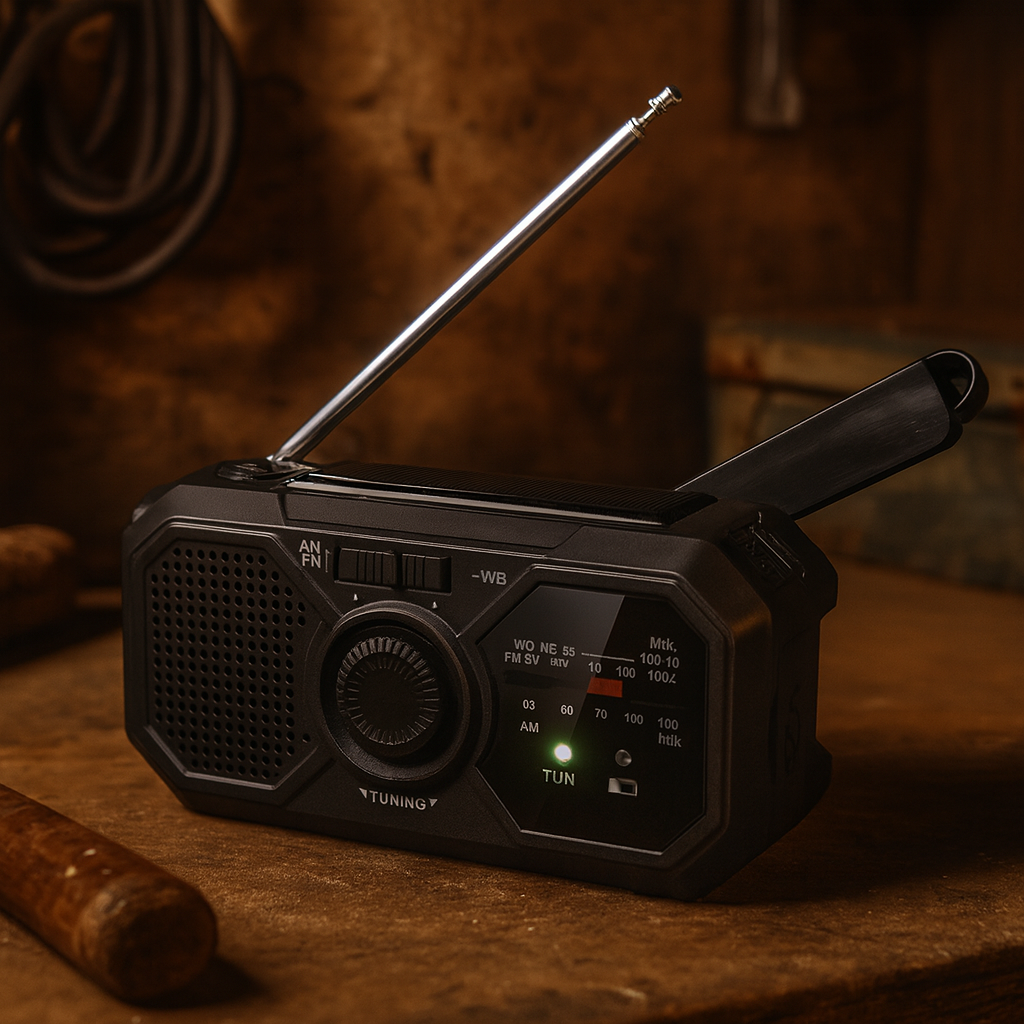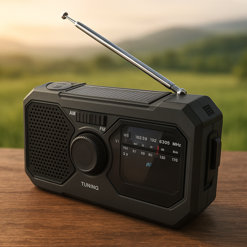 Dzięki panelowi solarnemu, korbie dynamo i wbudowanej latarce jesteś przygotowany na każdą sytuację – od awarii prądu po wyprawę w teren.