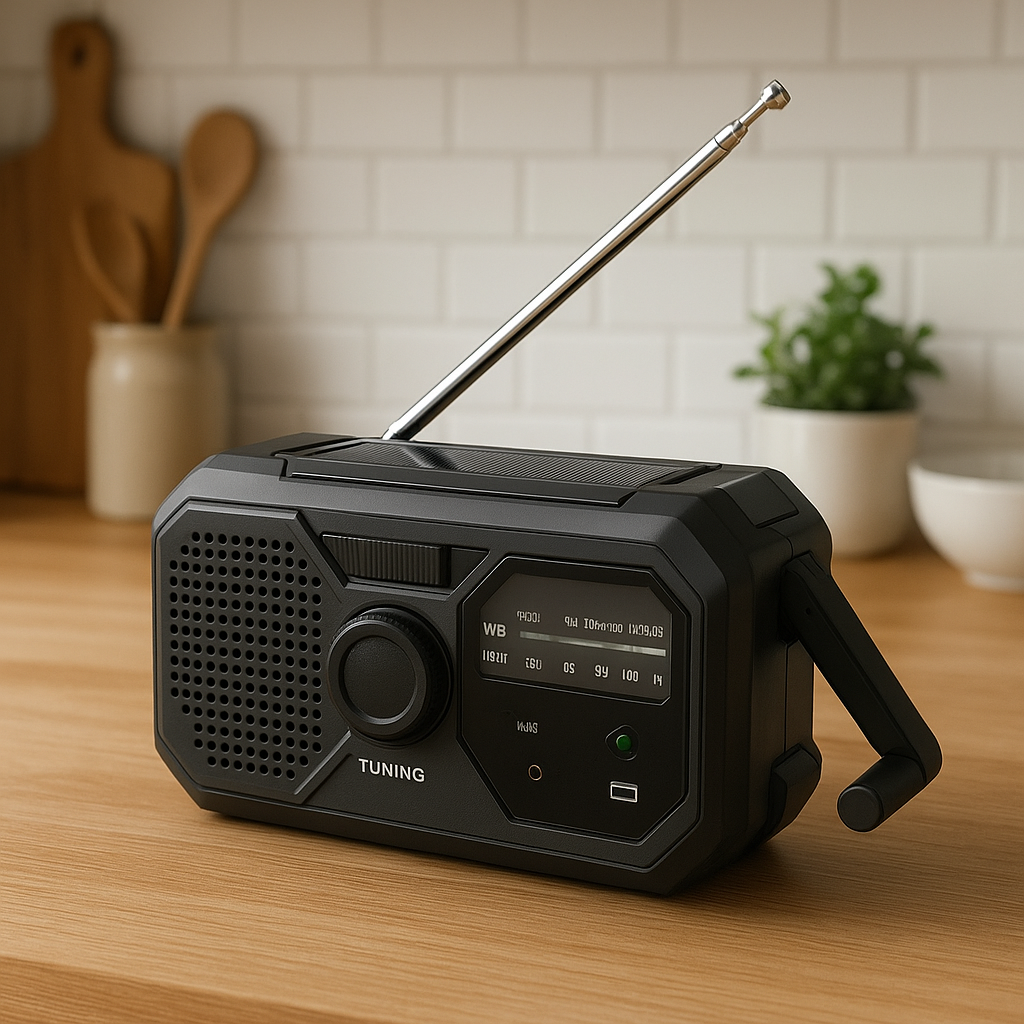 ✅ Tak! Wavvio™ ma 3 źródła zasilania: panel solarny, korbkę dynamo oraz wbudowany akumulator ładowany przez USB. Dzięki temu działa nawet przy długiej awarii prądu.